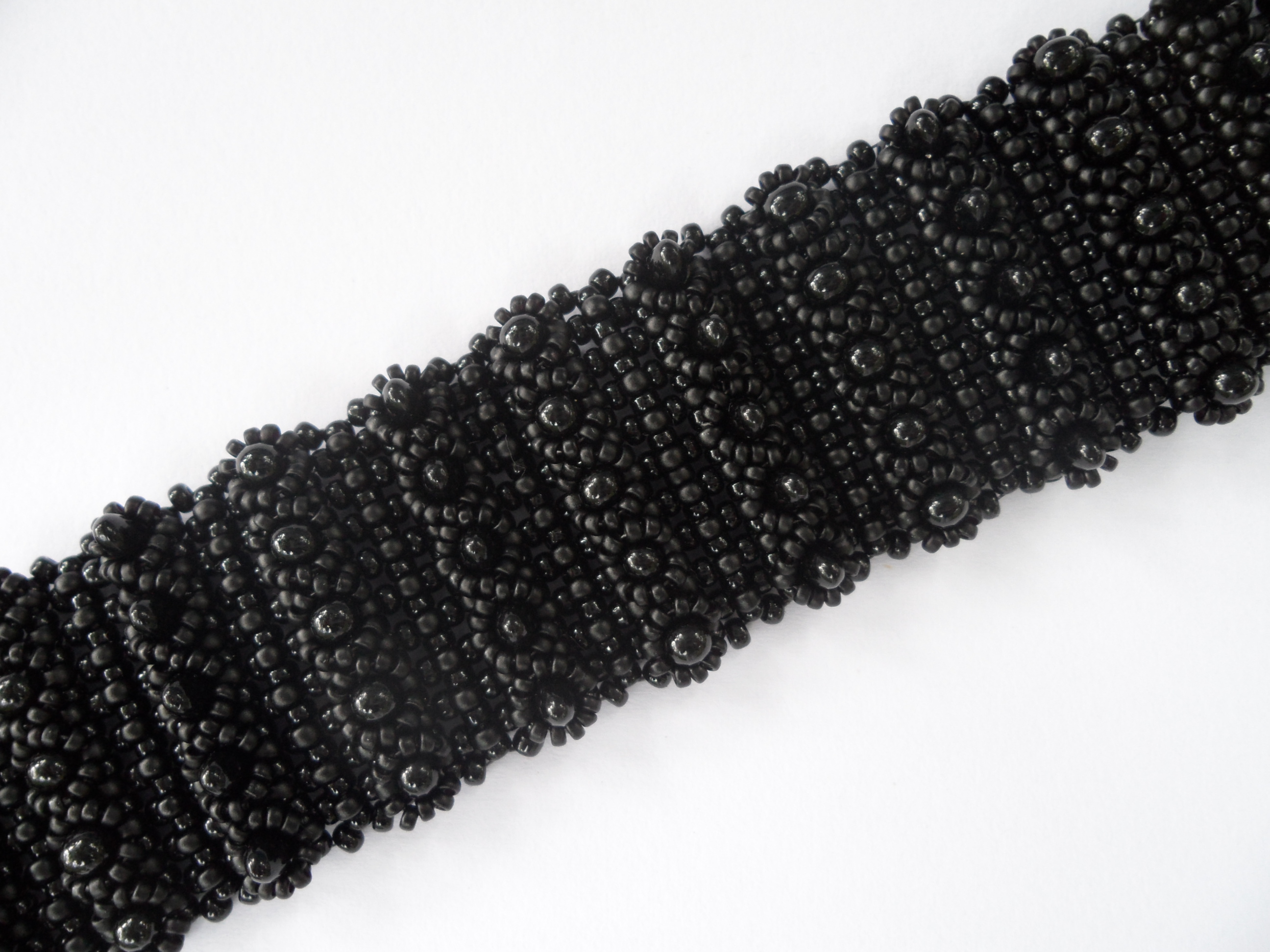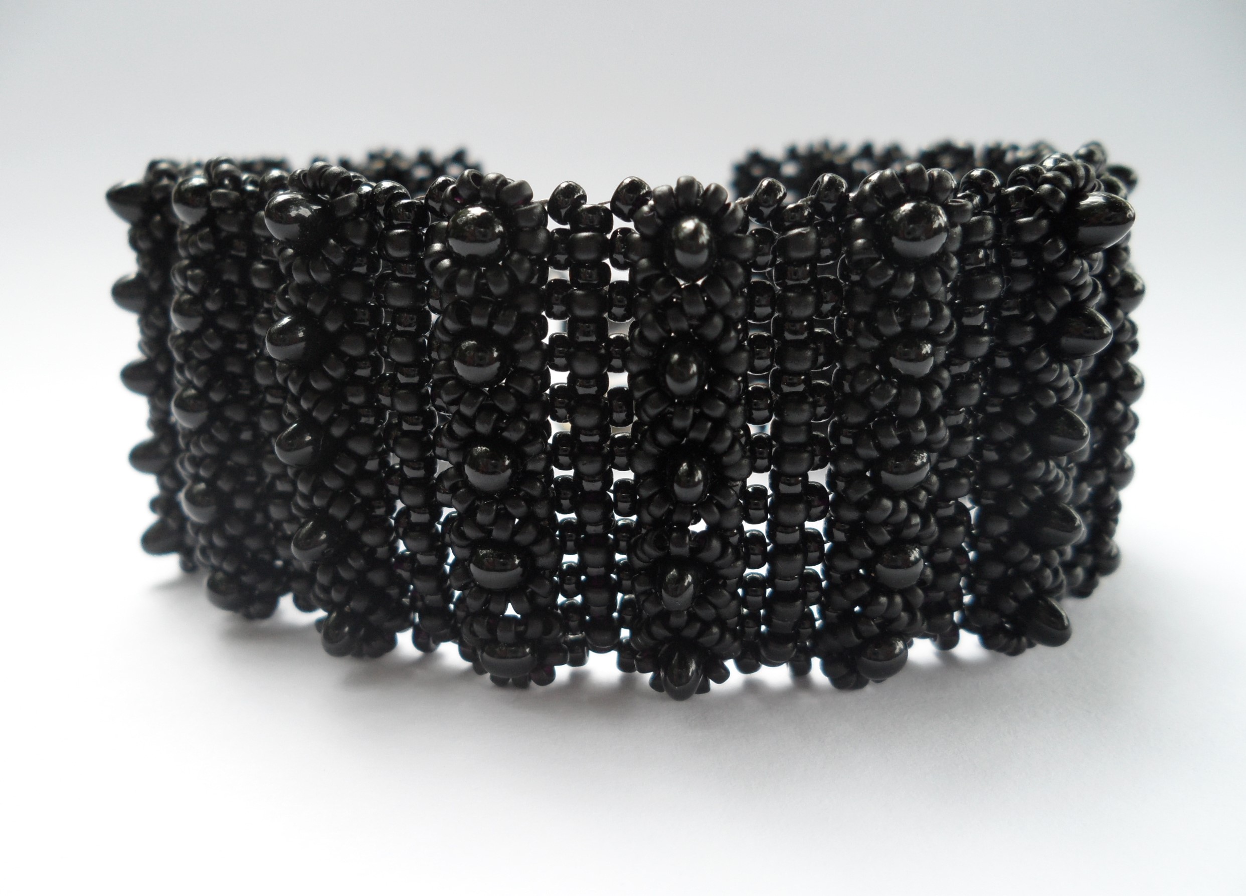 De vlecht bestaat uit miyuki zwart en semi mat zwart en is gemaakt in twisted herringbone.